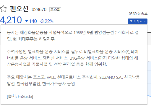 1. 팬오션 주식 시장에서의 위치